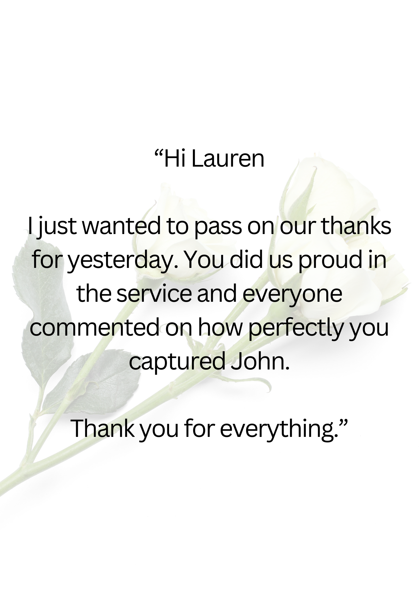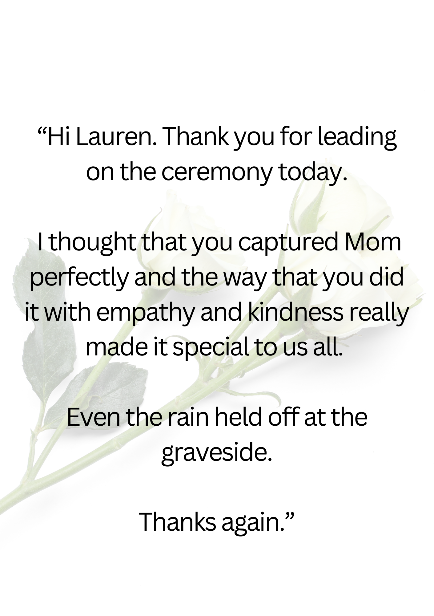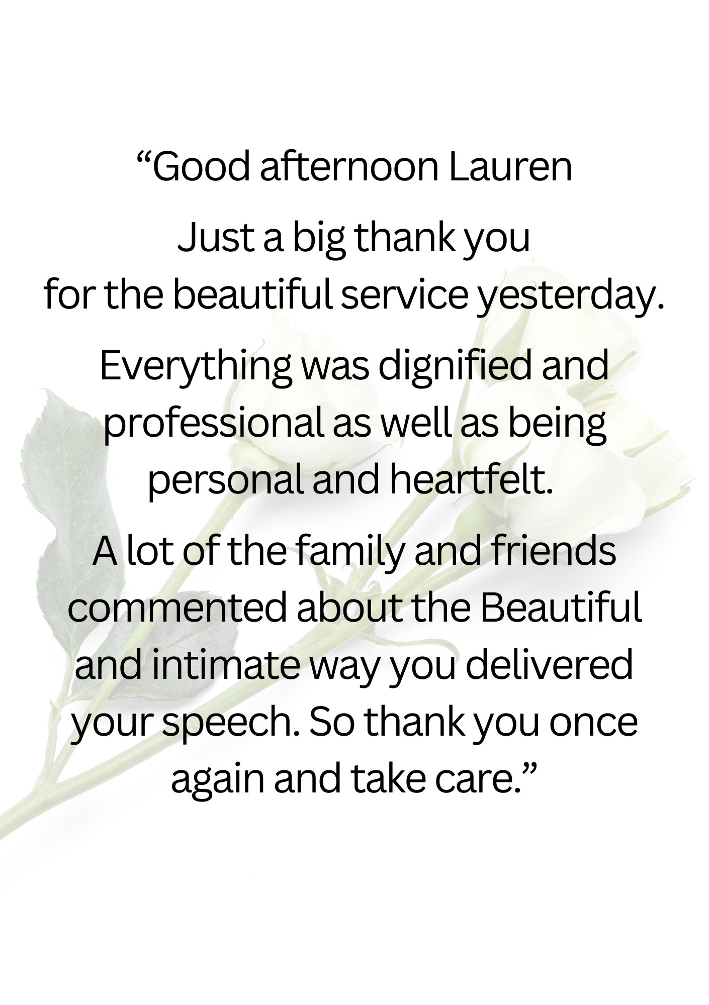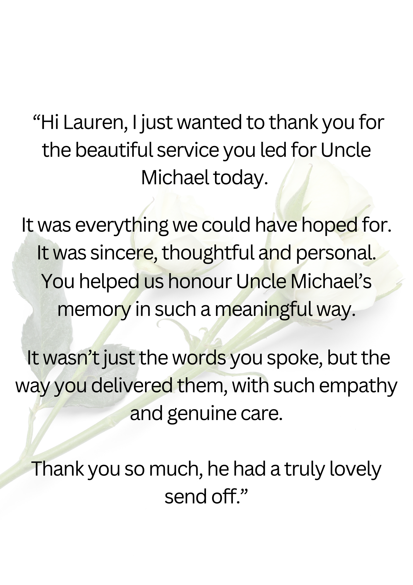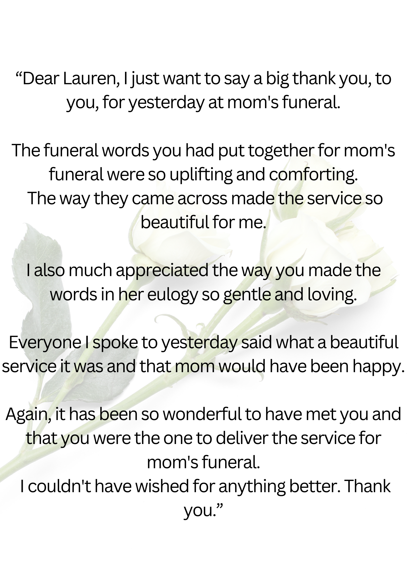 If I have had the privilege of leading a service for your family, or if you have attended a service I have conducted, I would be very grateful if you would consider leaving a testimonial. You can do so using the following form.